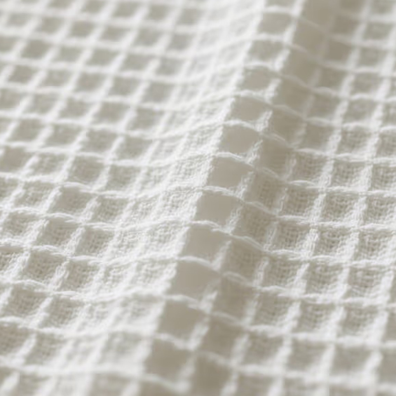 Waffle Knit Comfort Kumaşlar, benzersiz ızgara benzeri içbükey-dışbükey dokuyla dokunmuş bir kumaştır. Yüzeyi, mükemmel nefes alabilirliğe ve mükemmel ter emilimine sahip olan waffle şeklindedir. Bu yapı, kumaşın nemi etkili bir şekilde emmesine ve teri hızla uzaklaştırarak cildin kuru kalmasını sağlar. Yüksek yoğunluklu egzersiz sırasında giymeye uygundur ve egzersiz sırasında rahatlık sağlamak için teri hızlı bir şekilde emip buharlaştırabilir. Waffle Knit kumaşın hafifliği ve yumuşaklığı yaz aylarında giyimi oldukça rahat hale getiriyor. Sıcak havalarda vücudu serin tutmak için yazlık gömlek ve diğer kıyafetlerin üretiminde yaygın olarak kullanılmaktadır. İyi nefes alma özelliği ve teri uzaklaştırma işlevi nedeniyle bu kumaş, sporcuların teri hızlı bir şekilde silmelerine ve egzersiz sırasında kuru kalmalarına yardımcı olmak amacıyla spor havlusu yapımına çok uygundur.